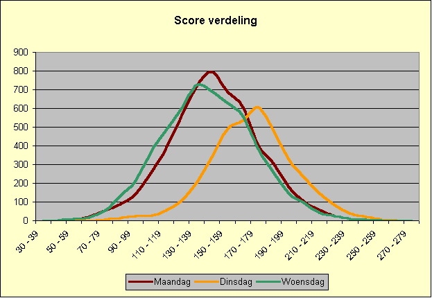 | Score | Maandag | Dinsdag | Woensdag | |