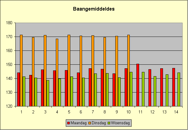 | Baan | Maandag | Dinsdag | Woensdag | |||||