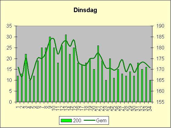 | Baan | Dinsdag | Maandag | Woensdag | |||||