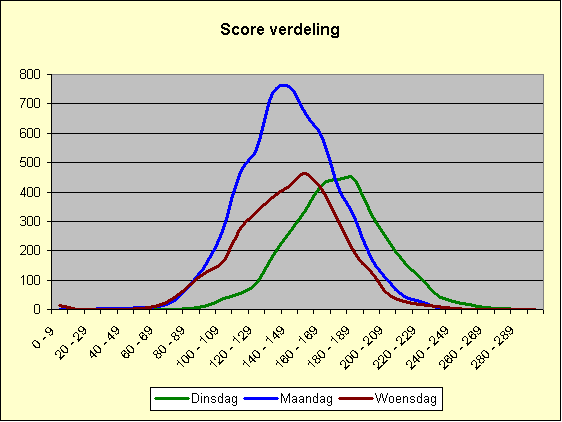 | Score | Dinsdag | Maandag | Woensdag | |